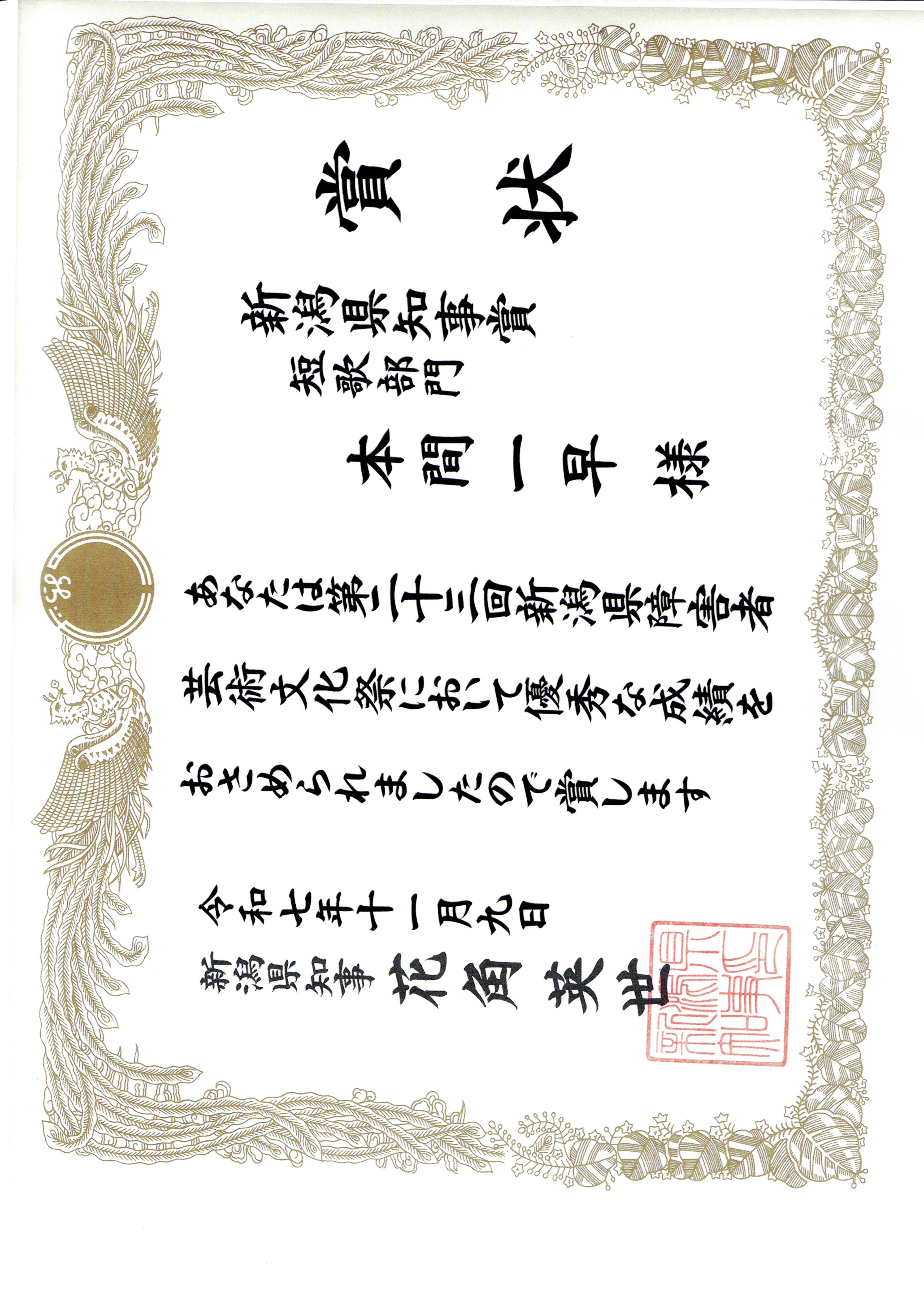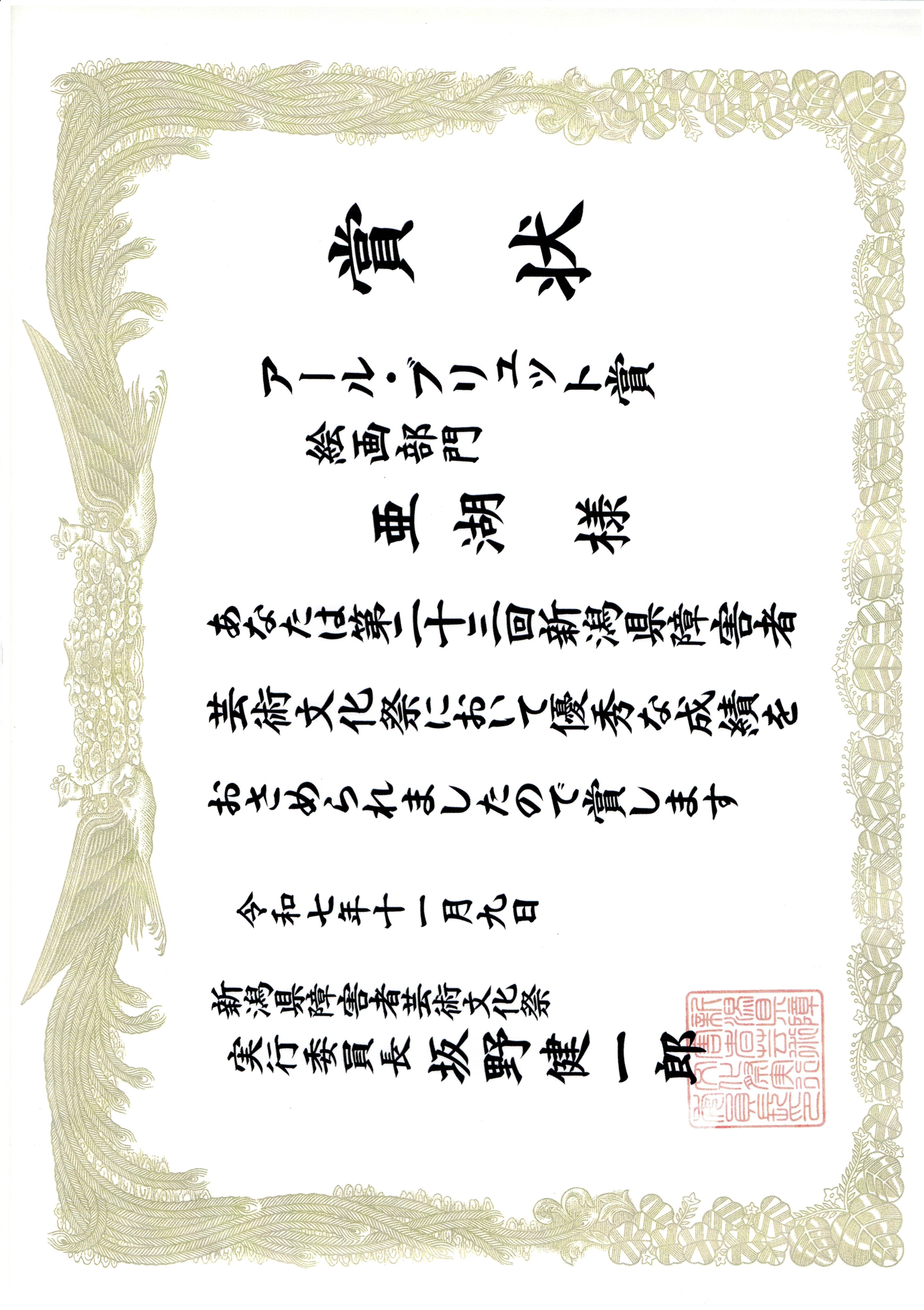 新潟県障害者芸術文化祭審査員特別賞受賞